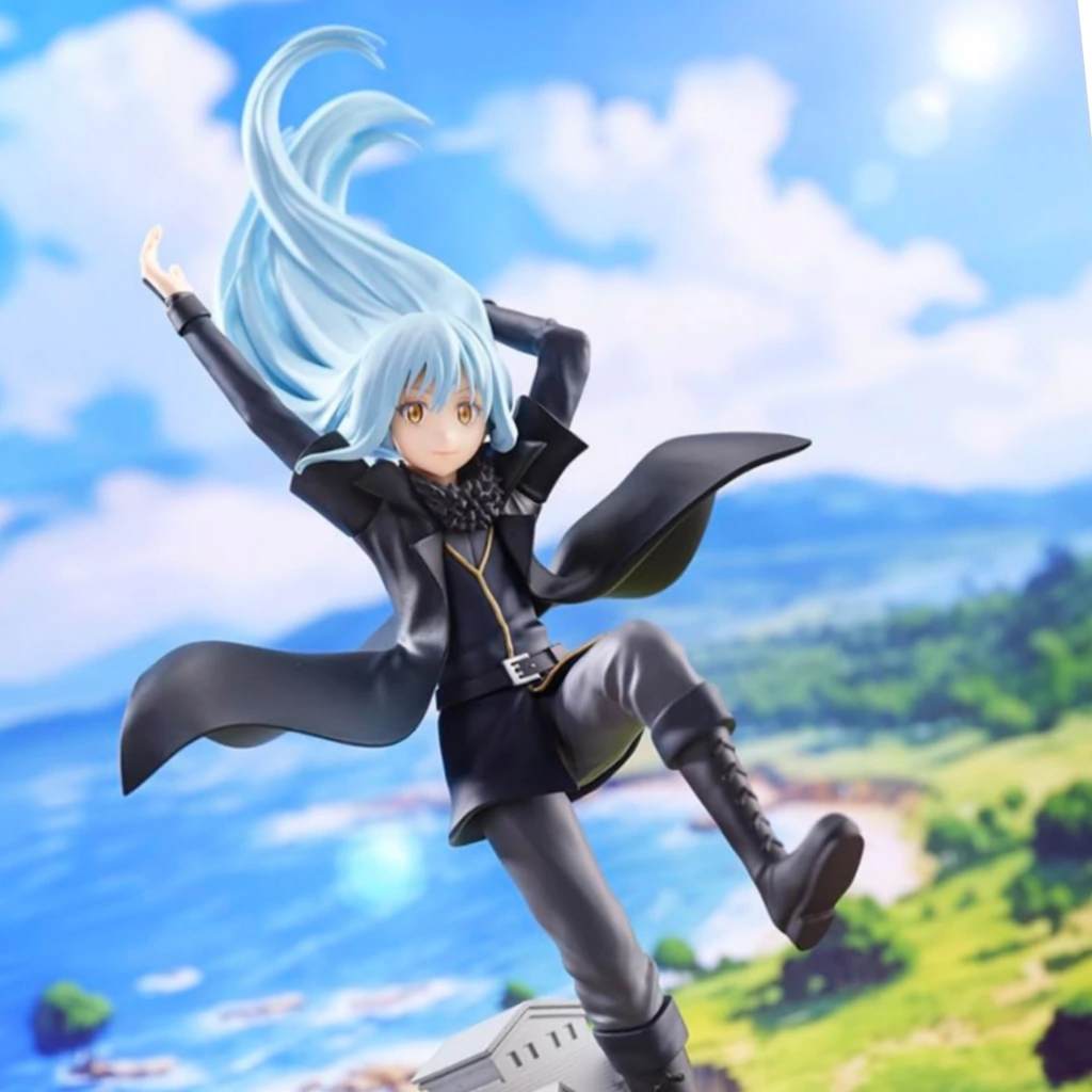 Rimuru aparece em uma pose imponente e cheia de movimento, com os cabelos azuis esvoaçantes que dão sensação de ação direta do anime Tensei Shitara Slime Datta Ken. A escultura transmite a leveza e poder do personagem, enquanto a base temática com cenário agrega ainda mais realismo para sua coleção.